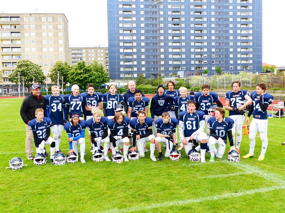 GÖTEBORG MARVELS vs. ÖREBRO BLACK KNIGHTS UTV. Två omgångar avklarade och två vinster under bältet. I senaste matchen mot Eagles fick vi möjlighet att låta samtliga våra spelare rotera in och känna på det på riktigt, eftersom siffrorna rann iväg lite för Halmstad som kom till spel med bara 14 spelare. De spelade trots detta hård football i fyra kvartar. Nu på lördag blir det drabbning igen, denna gång mot Black Knights utvecklingslag. Ett Örebro som resultatmässigt känns stabilare och explosivare än förra året. Exakt hur stor skillnad det är från förra säsongen återstår att se men att de är bättre är vi medvetna om. Vi har haft två helt ok träningar i veckan och hunnit kolla lite film på Örebro så vi känner oss bra förberedda inför matchen. Positivt är också att vår quarterback Jonathan Andersson är tillbaka i ljusblått efter skadan mot Borås. Vi kommer fortsätta försöka spela vårt spel, hård och aggressiv football tills slutvisslan går. Spelar vi bara disciplinerat på defense och med lite attityd på offense så har vi goda chanser att vinna matchen. Troliga starters: OFFENSE QB Jonathan Andersson RB Sean Backer WR David Preiholt WR Oscar Wahlberg WR Rasmus Johansson WR Simon Gerhardts OL Mikael Perisic OL Andreas Ott OL Niclas Nordgren OL Mikael Richardsson OL Erik Olsson DEFENSE DL Jonas Ödman DL Phillip Mauritzson DL Dan Jörneklint DL Kevin Thalamcherry LB Linus Dalerstedt LB Daniel Fernandes LB Jonas Lunding DB Robert Lorentzon DB Sergi M. Raya DB Tobias Asp DB Kim van den Berg Väl mött på Backavallen lördag 21/5 kl. 12.00! / Markus Linderum, HC Göteborg Marvels Bild: Henrik Augustsson